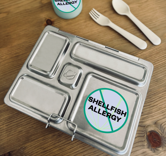Shellfish Allergy Alert Waterproof Stickers - 3 inch round (sheet of 6)