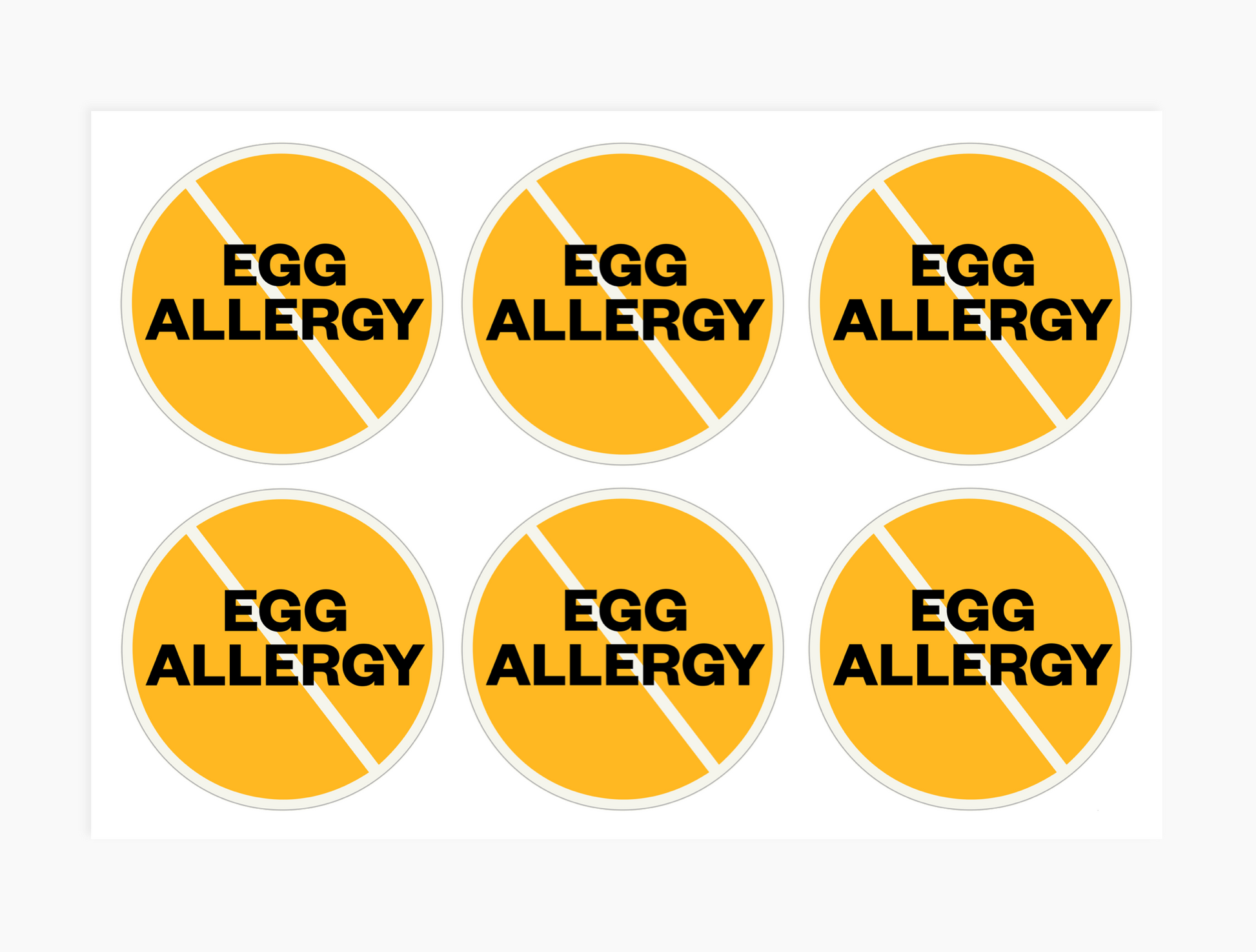 Egg Allergy Alert Waterproof Stickers - 3 inch round (sheet of 6)